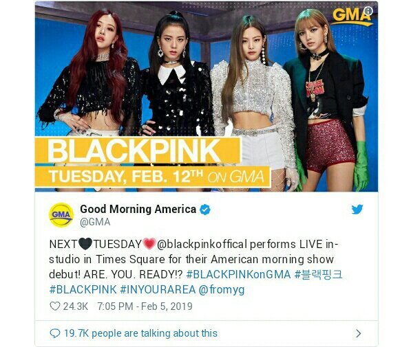 Updating as links become live! Public and to be on a show such as good morning america (gma), with a large u.s. Them not being able to spell dddd had me like 'eh' cause i get confused sometimes . Blackpink @ good morning america (190212). Jennie, lisa, rose and jisoo chat about their first group visit to new .